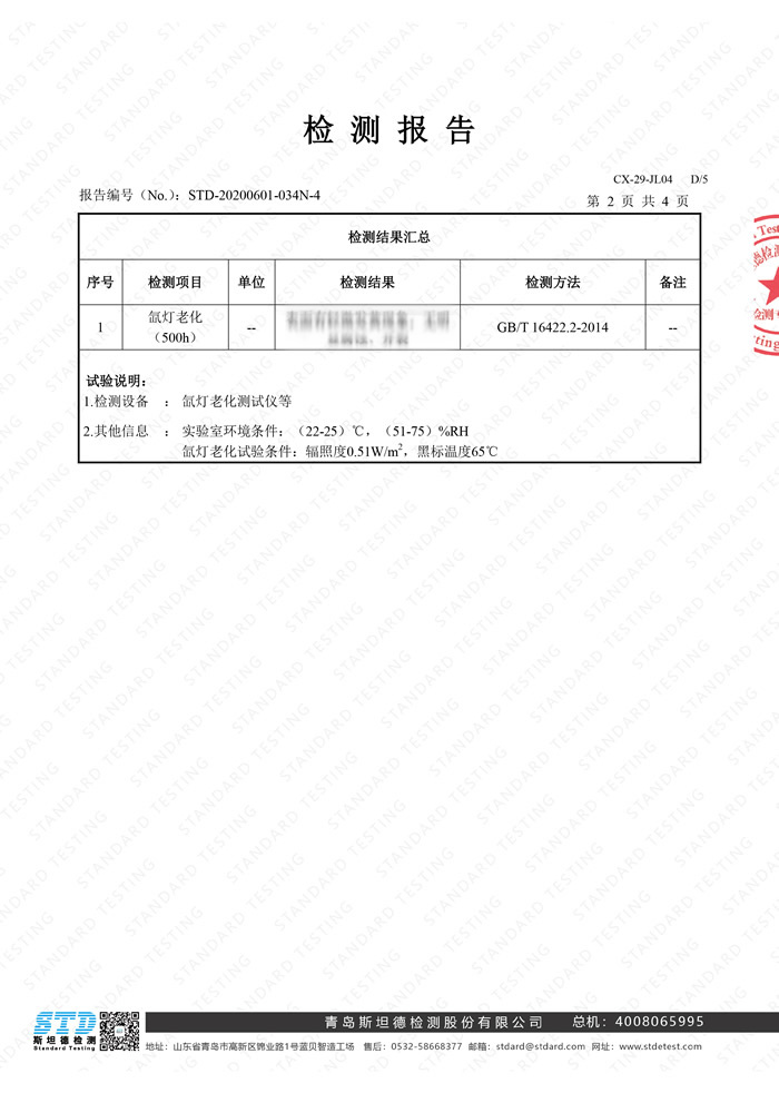 資質(zhì)證書 Qualification certificate高分子合金電纜橋架檢測報告 STD-20200601-034N-4