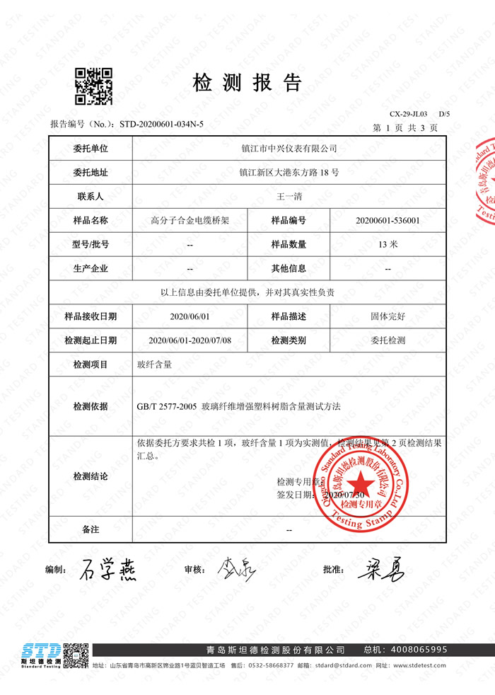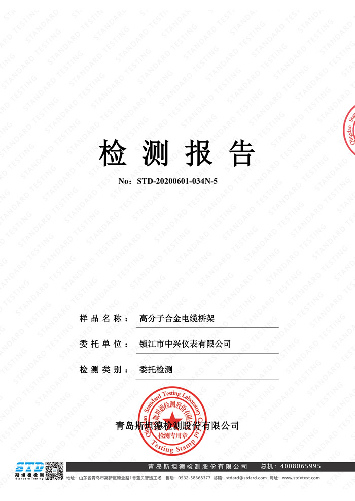 資質(zhì)證書 Qualification certificate高分子合金電纜橋架檢測(cè)報(bào)告 STD-20200601-034N-5
